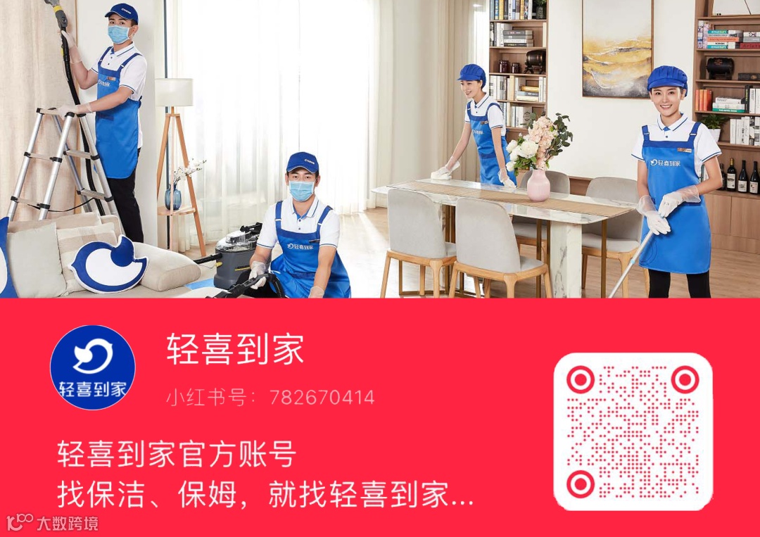 找保洁、保姆、月嫂、育婴、家电清洗、家居养护、室内环境治理、奢侈品养护,都可以咨询“轻喜到家”微信公众号/轻喜到家APP/轻喜到家小程序,员工都是自己的,全自营、非中介,更专业。