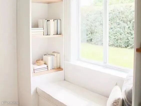 也可以在飘窗一侧贴墙面做一个书柜,放上几本爱书,享受一下午后的读书时光。