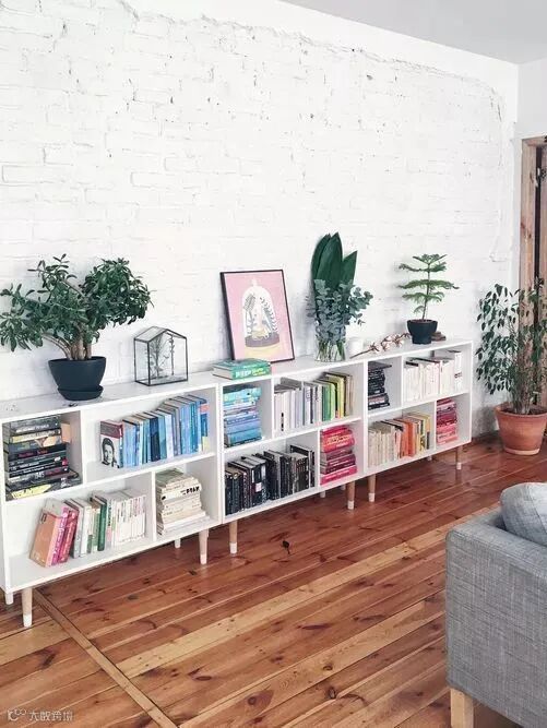 如果你的存书不多,买个一人高的书柜也是一个不错的选择,既好做收纳也不会占很多空间。