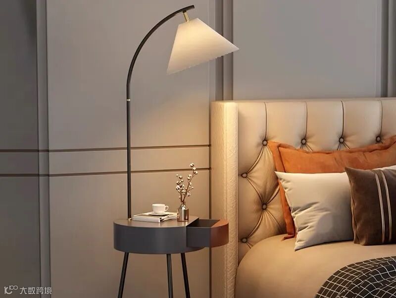 这种带置物架的落地灯非常实用,可以在置物架上放眼镜、手机、手表这些小物件。