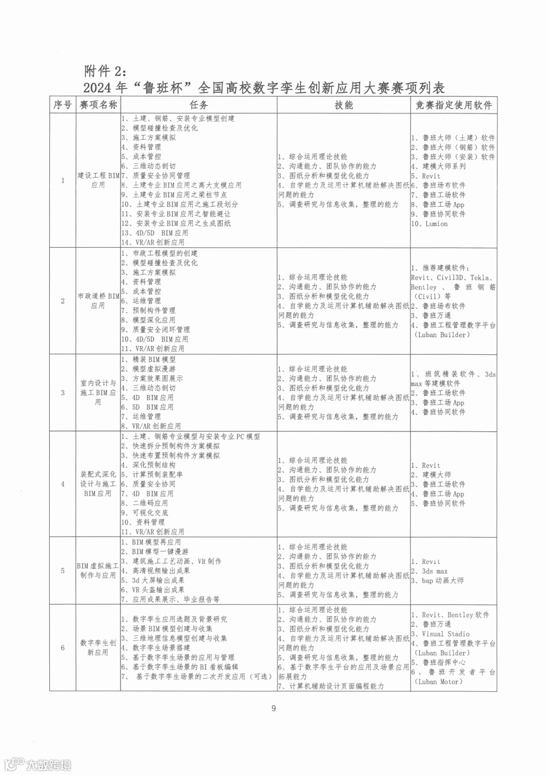 2.2024年“鲁班杯”全国高校数字孪生创新应用大赛赛项列表