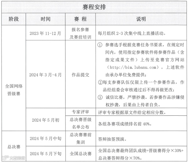 本阶段线上提交作品。参赛工程项目案例自选,参赛团队将竞赛成果提交官网(http://bim.lubanu.com) 并集中展示,作品上传截止时间为2024年4月10日(暂定)。具体要求参照任务书(各赛项的任务书在竞赛官网下载)。