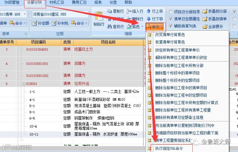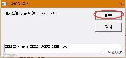 四、统一删除某个相同子目如下图操作。比如子目1-1,1-1一定要用英文下的单引号括起来,如果你想删除其他的,改一下编号就可以了。命令代码:DELETE * from DEZMK WHERE DEBH='1-1'
