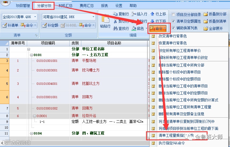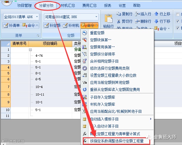 在分部分项窗口定额命令栏中的“命令”下“按指定额系数调整选择行工程量”,此命令不可撤销。