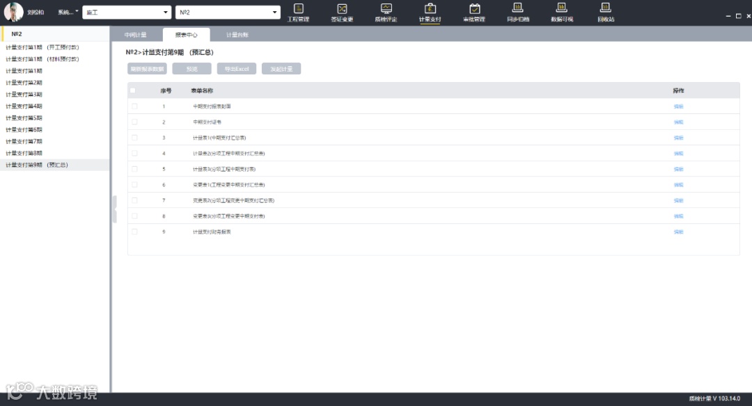 解决超计量:软件根据三级清单设置了2级卡量,有效避免计量工程中超计、漏计、错计等问题。工程计量从中间计量表到计量大表数据数据自动汇总,