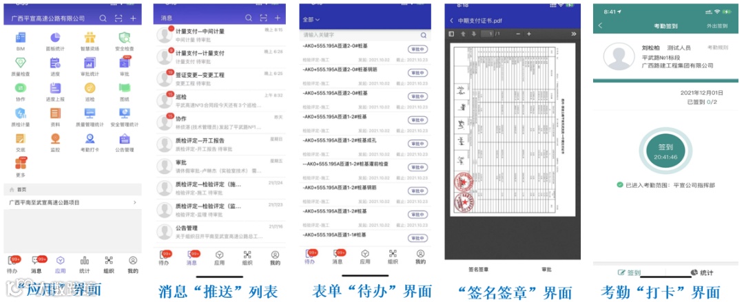 PC端的业务模块数据同步推送到手机移动端,通过手机端即可实时查看项目质量、安全、进度、投资等相关数据,并支持手机端进行资料表单的审批签字,使项目管理更加方便、高效、快捷。