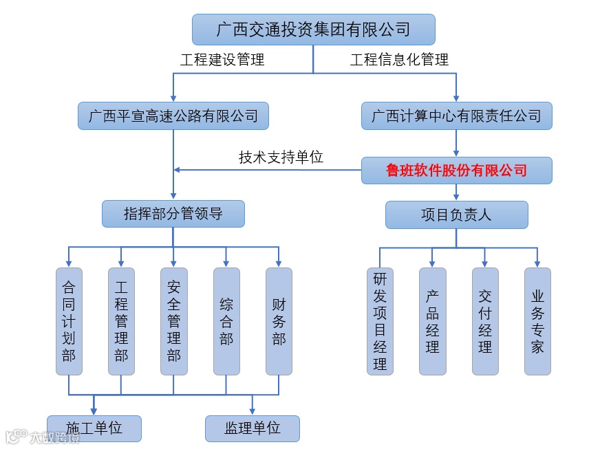 项目由广西平宣高速有限公司牵头,鲁班软件股份有限公司和广西计算中心有限责任公司为该项目的技术支持单位
