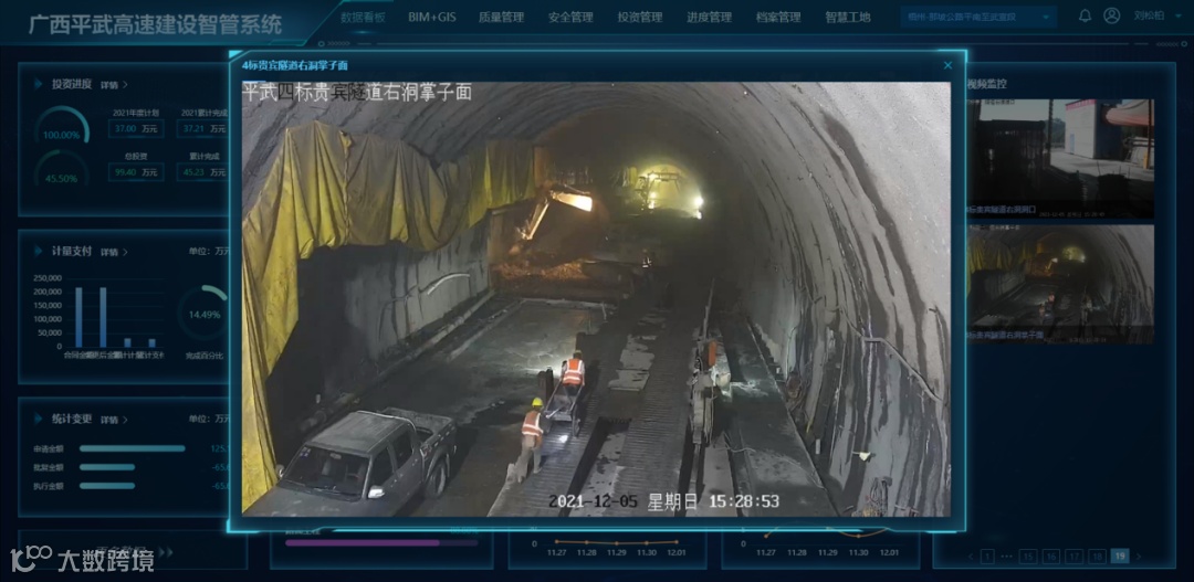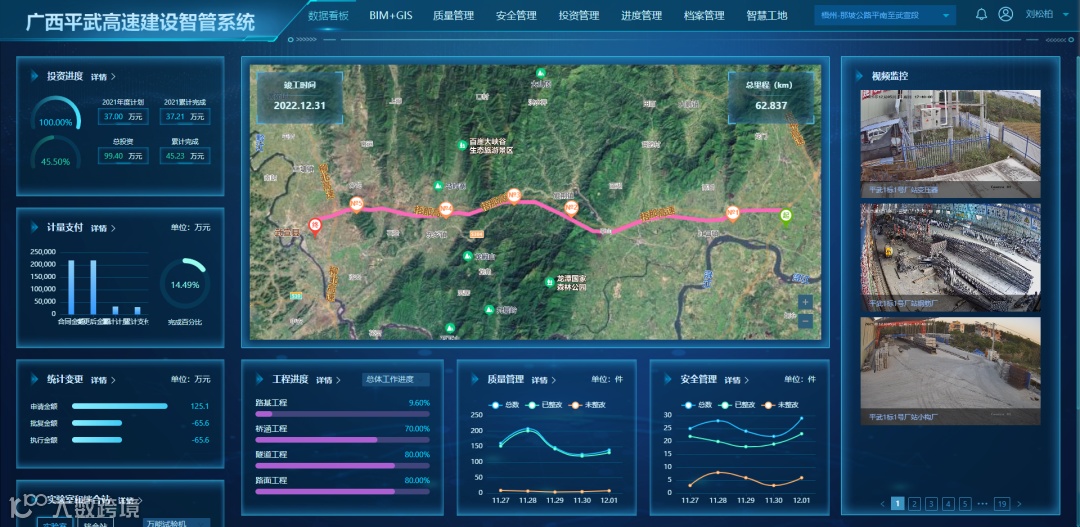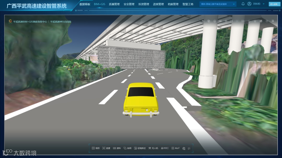 依托平南至武宣段高速公路,综合运用BIM、GIS、大数据、人工智能、物联网等信息技术,研究构建一套涵盖公路建设项目进度、成本、质量、安全的高速公路项目建设智管系统,具体实现“三个一”: