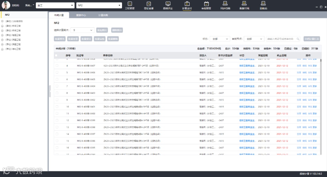 本项目引进广东省三级计量清单,建立公路工程概、预算与工程量清单造价的对应关系,规范工程计量与支付、设计变更和工程结算等造价管理工作,提升公路工程全过程造价管理,软件根据三级清单设置了2级卡量,有效避免计量工程中超计、漏计、错计等问题。工程计量从中间计量表到计量大表数据,通过数据设置索引关系,实现计量数据自动汇总到计量大表,计量大表间数据也实现相互调用,并且在审批计量报表的时候能够查看本期质检、计量相关的原始资料,方便管理者查看相关原始数据,降低计量工作难度。