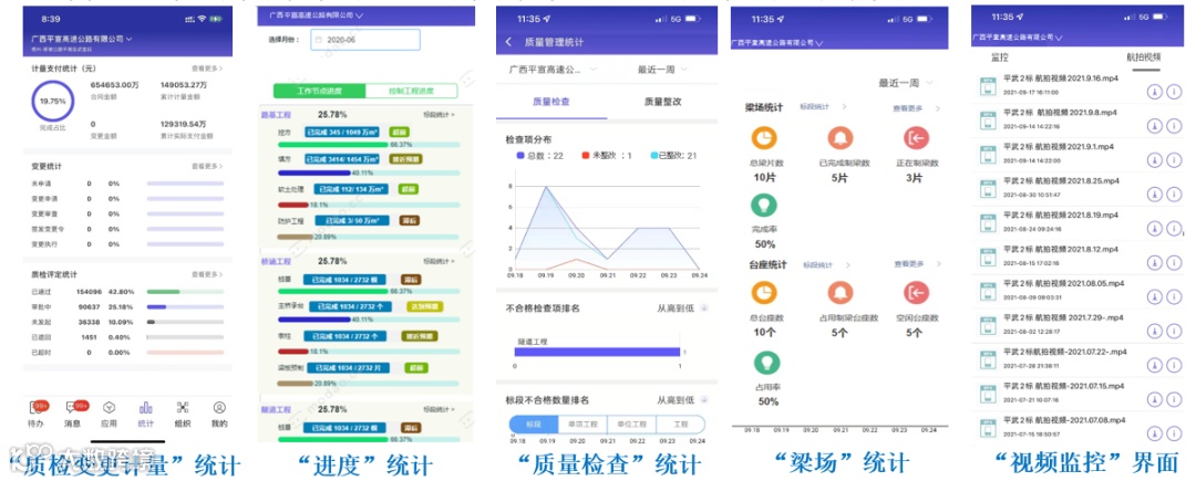 打开软件就能看到首页统计分析从首页就能看到全线的情况,包括质检评定、变更统计、计量统计、进度统计、质量统计、安全统计、梁场统计(含架梁统计)、监控等,从三个层级进行统计:第1级:全线状况或者管辖范围内的几个标段状况;第2级:各标段状况;第3级:各标段部位、分部分项状况。