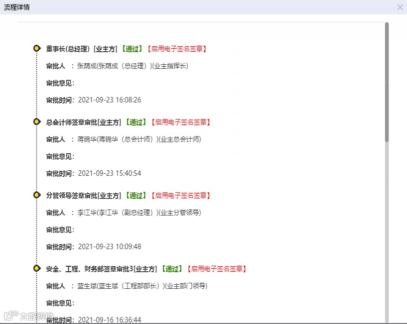 通过引入CFCA认证的电子签名/签章和自定义设置审批流程进行线上签名签章,保证审批流程的合理性和线上协同办公的合法性,避免了线上一道线下一道双重流程,实现工程资料的无纸化办公。