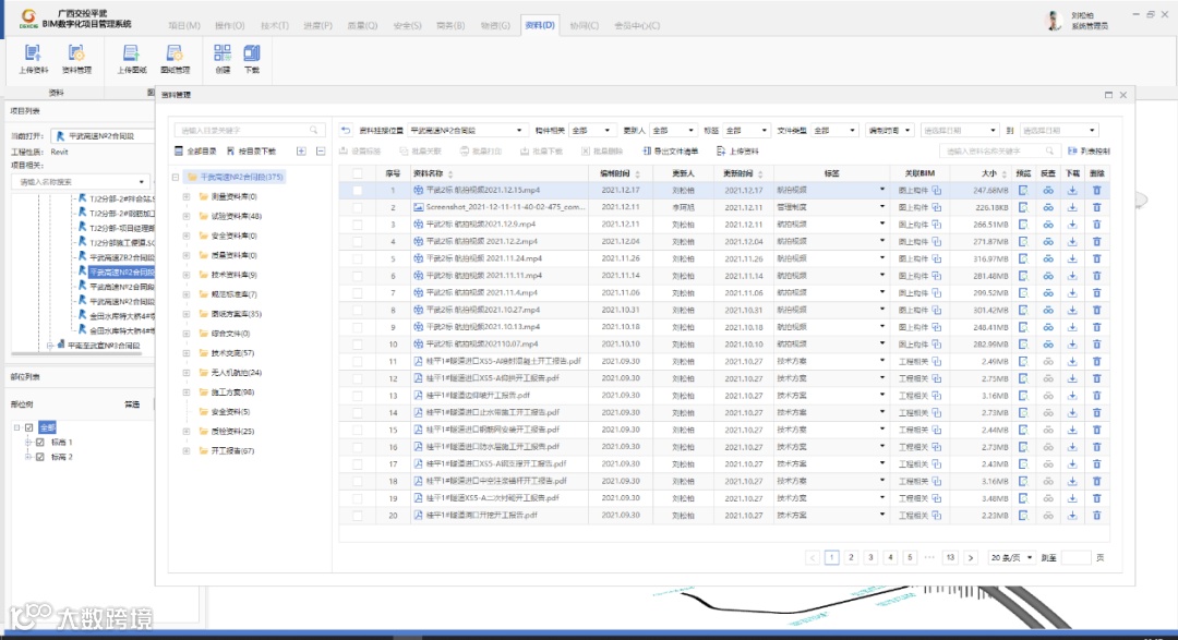 针对项目线下纸质资料收集和整理,上传到平台进行分类存档,并关联到具体的模型构件上,项目管理人员可便捷有效地获取工程数据资料,基于BIM平台的资料管理使项目资料储存、流通协同更为方便。