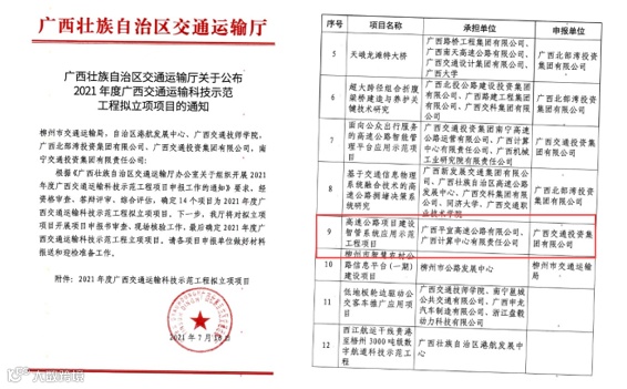 目前,本项目已被区交通运输厅列为2021年广西交通运输科技示范工程项目、拥有广西人工智能学会科学技术成果评价证书。