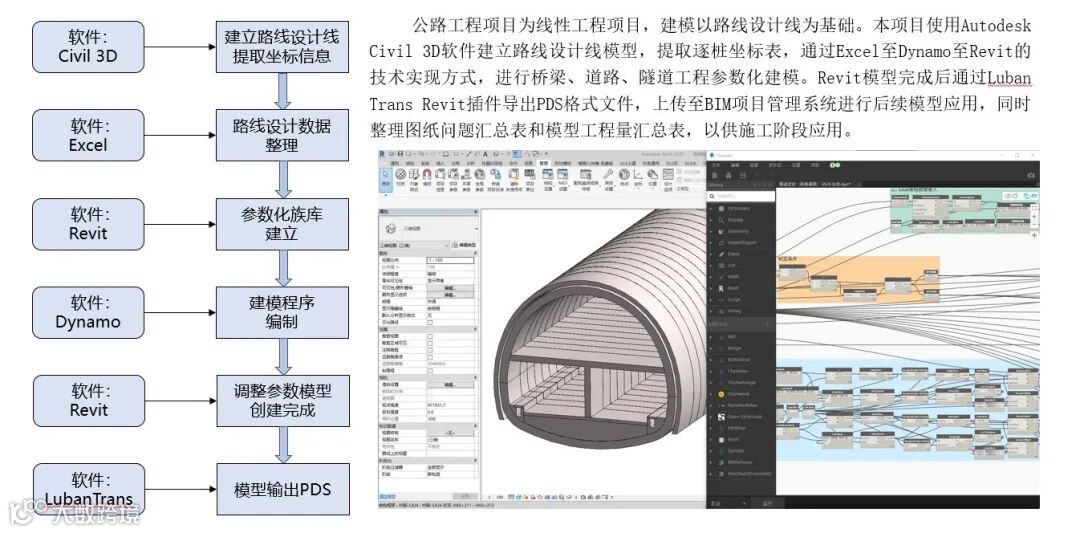 4)通过Revit建立了一套路桥隧模型库,利用Revit+Dynamo参数化建模,提升BIM模型的建模效率,为集团相似工程积累BIM建模经验。通过BIM技术阶段的应用,实现了大量图纸问题的提前发现;对工程施工过程中的错漏碰缺在一定程度上进行了规避。