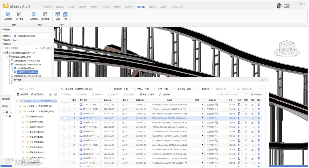 通过平台对原材料电子化存档并与BIM模型进行关联,实现BIM模型和原材料的双向反查,杜绝工程有原材料不合格造成的质量隐患。