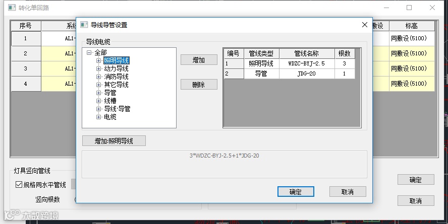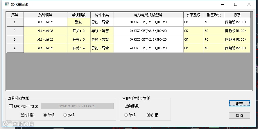 ①支持设置灯具竖向管线的规格和根数,规格可以任意配置,根数可设置为多跟和单根