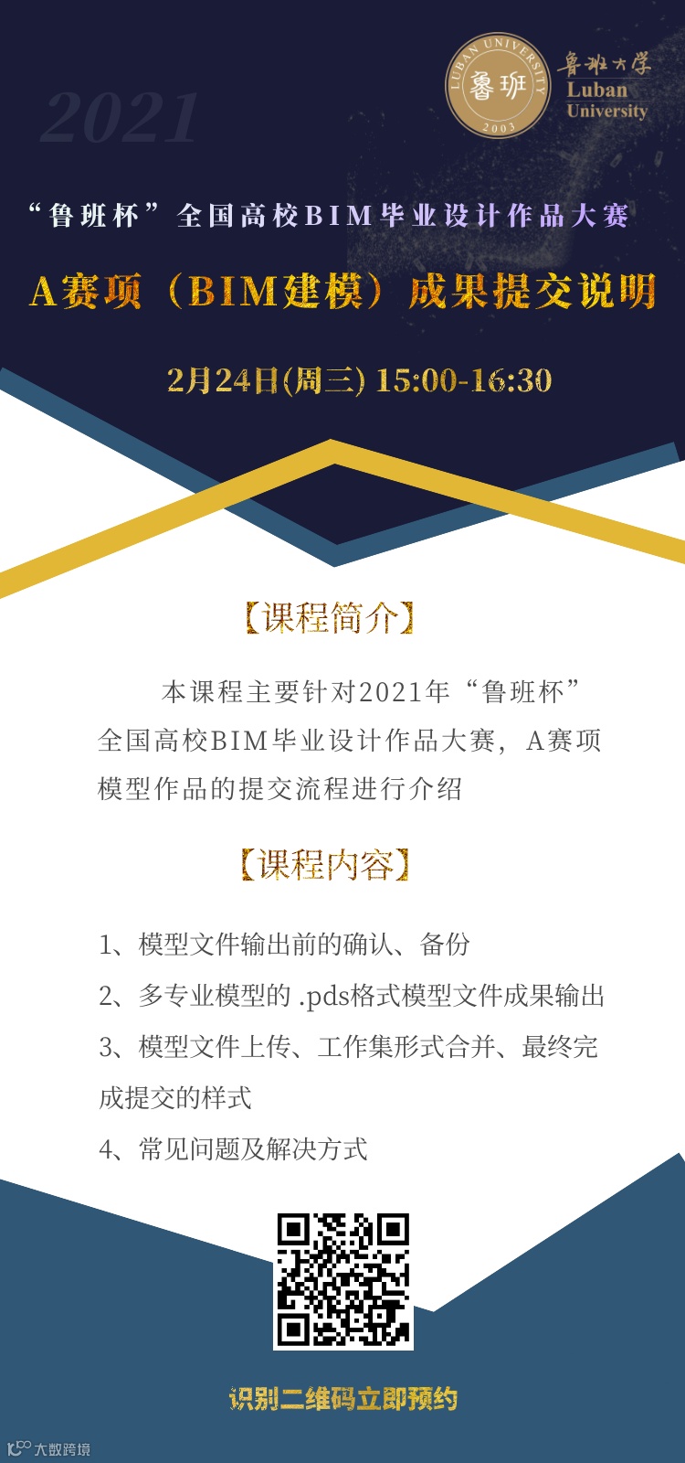 直播预告| 2月24日 2021年“鲁班杯”全国高校BIM毕业设计作品大赛A赛项(BIM建模)成果提交说明