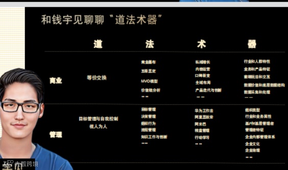 (这一番话拉进了我与他之间的距离)我继续说:宇见,你想一下,管理科学已经发展了一两百年了,这其中有多少我与你这样的代际?我们的前人又是如何解决的呢?所以,管理的底层逻辑是不变的,变化的是上面的技术和不同的容器。这就是老祖宗所说的道法术器。不信我们来试一下。