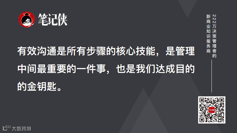 有效沟通是所有步骤的核心技能,是管理中间最重要的一件事,也是我们达成目的的金钥匙。