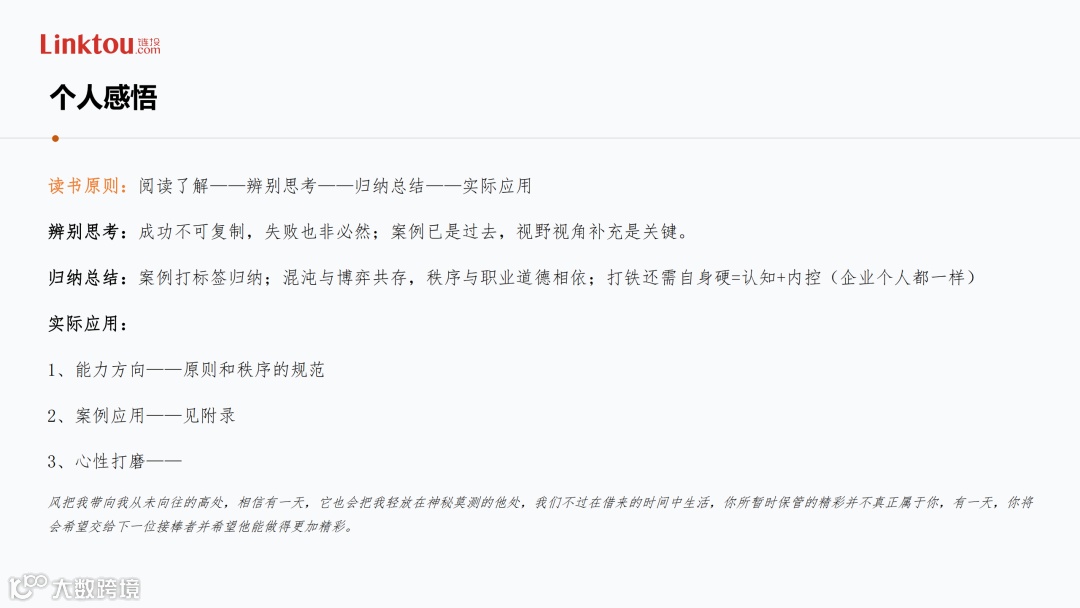 最后,当下时代我们做企业,还是要遵循发展规律,通过科学的管理理念和方法,带领企业可持续发展。