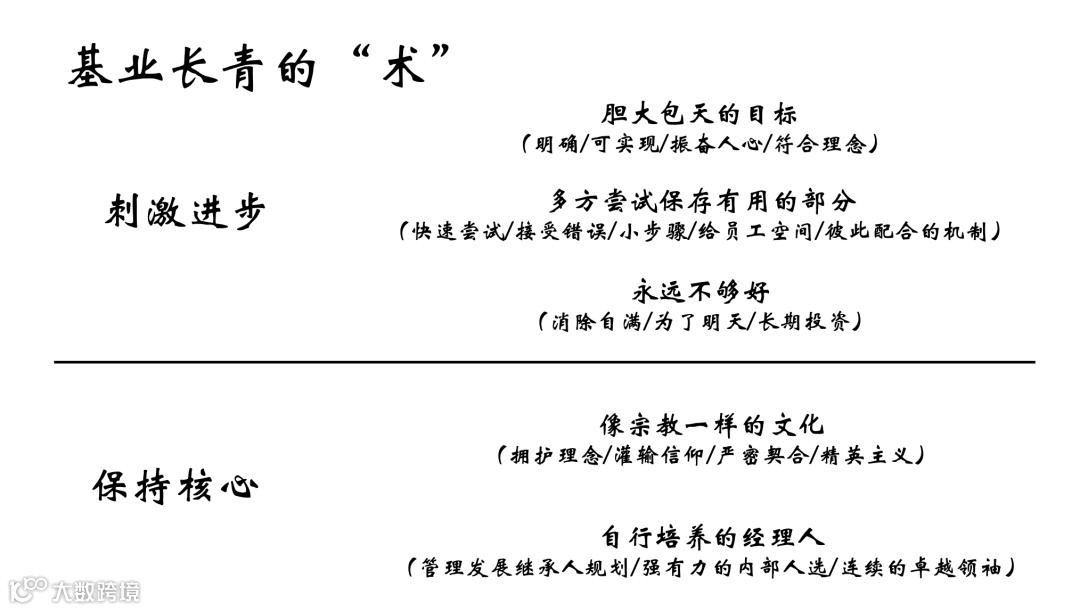 那基业长青给了创始人另外一个维度,如何做到仰望星空,公司是最终的产品。