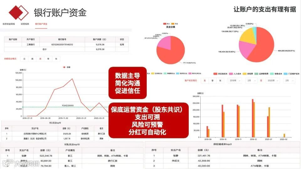 链投投中管理有三表:投资收益简报表、经营报表、银行账户资金表;实时了解投后经营情况,随时把握单店状态,降低沟通成本和及时的风险预警。