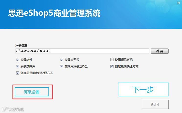 注:如果本机上已经安装过eShop系列产品,即IIS站点中存在SISS站点,则安装时修改此网站端口无效。