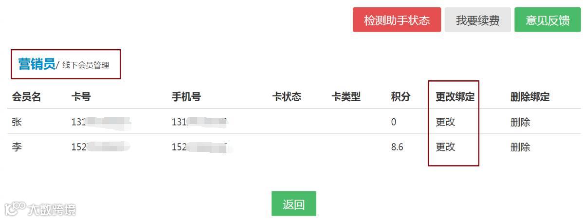 答:1.在微商店后台——“营销员”——“线下会员管理”中更换绑定的营销员,如下图一所示: