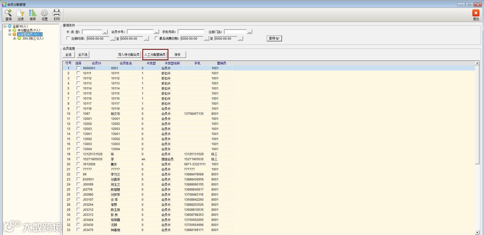 2.可直接在线下软件中“营销员管理”——“会员分配”中进行手动分配新的营销员。如下图二所示: