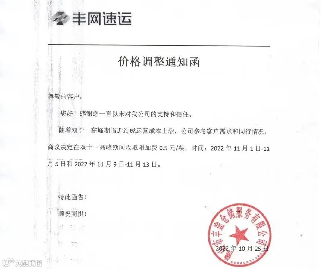 1、发文的单位为:佛山市丰途仓储服务有限公司,发文的对象为:客户。也就是说:这是网点针对电商的一个发文通知。