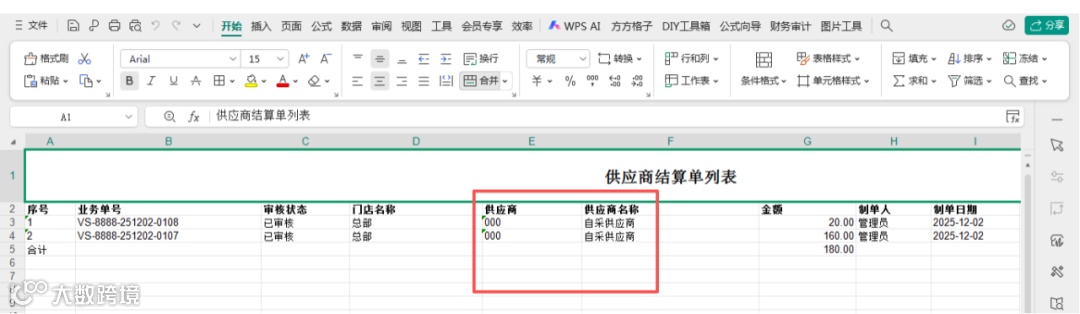 ●【供应商结算单】导出优化,导出明细新增 “供应商编码、供应商名称” 信息项,便于数据核对。