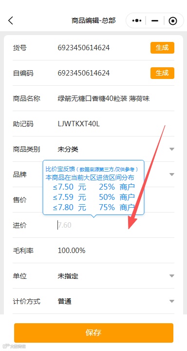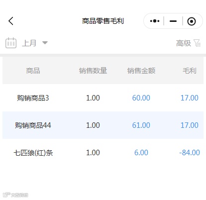 支持在小程序端查看商品销售数量、销售金额、毛利等数据,随时随地掌握盈利情况。