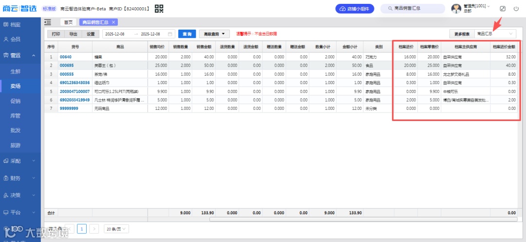 ● 【门店商品汇总】新增 “档案主供应商” 信息列,完善销售数据维度。