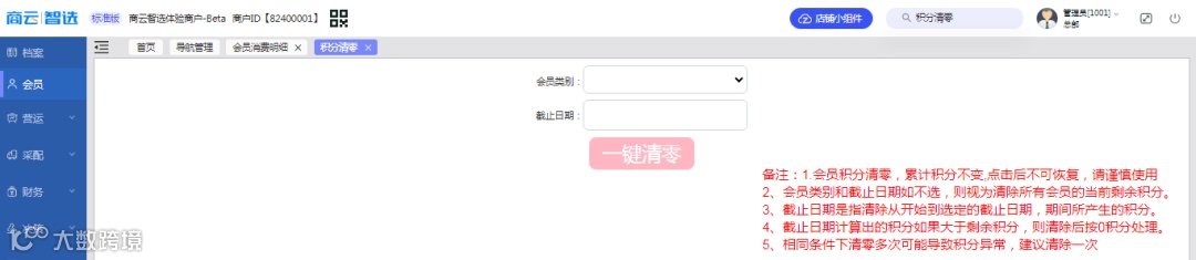 ●【积分清零】新增过滤条件:支持按 “会员类别” 和 “截止日期” 筛选清零范围,运营更精细。