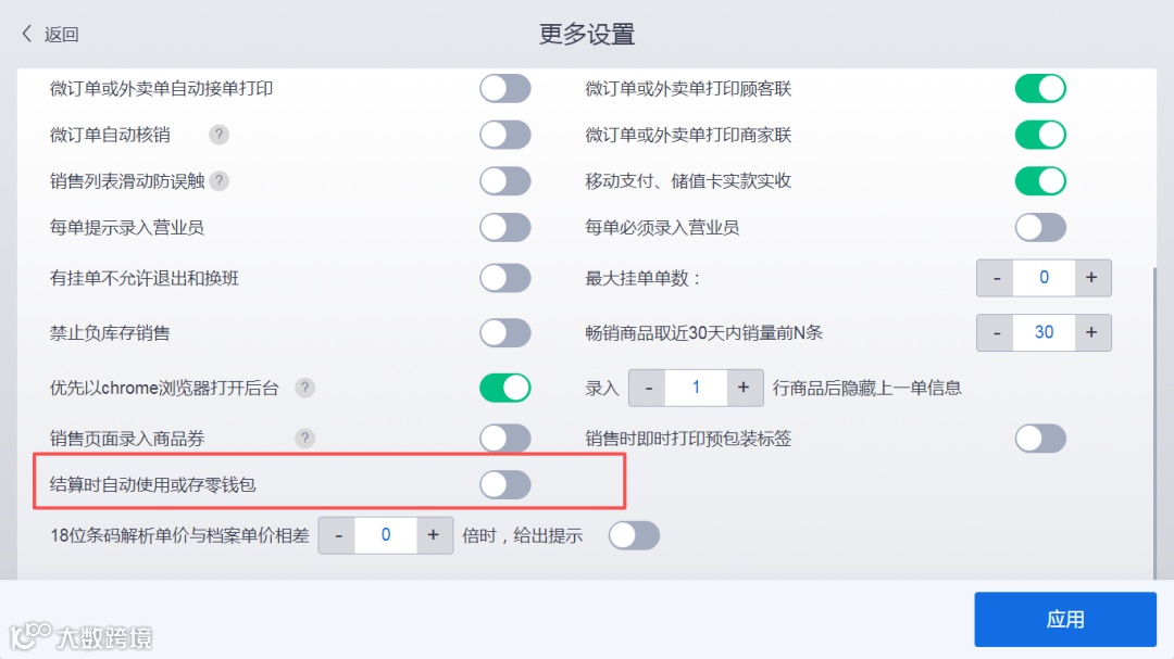增加结算时是否自动弹出零钱包设置,方便零钱管理。