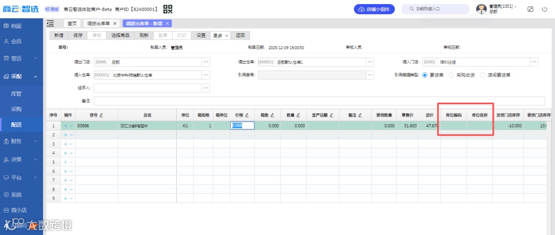 ●【调拨出库单、调拨收货单】明细中新增 “库位编码、库位名称”展示列,货位管理更清晰。