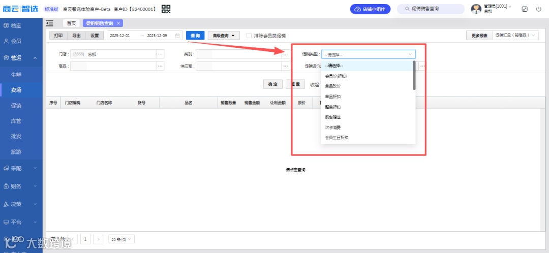 ● 【促销销售查询】增加 “促销类型” 筛选项,可精准查询不同类型促销活动的销售数据。