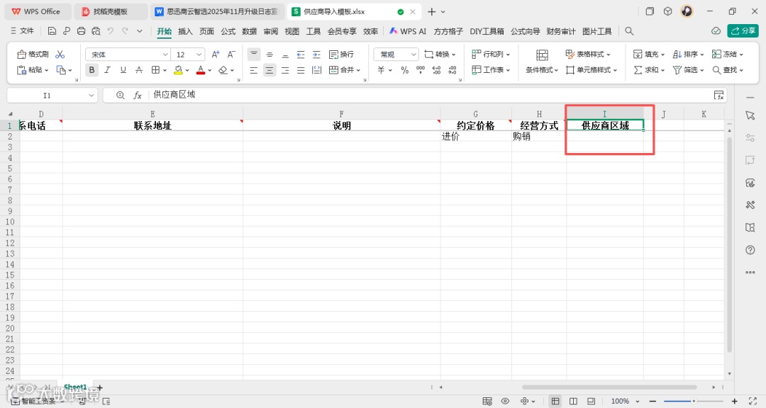 导入供应商信息时新增 “供应商区域” 信息项,完善供应商档案数据。