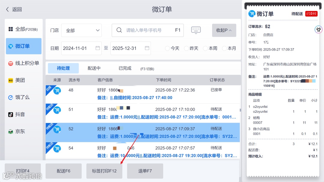 录入生鲜商品时自动打印预包装标签;微订单支持打印标签;新增 “退单不打印标签” 设置项。