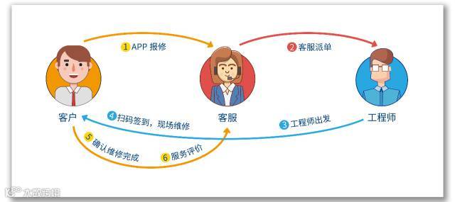 APP应用分为客户端、工程师端、客服端,客户、工程师、客服使用后台创建的账号登录对应的APP应用。