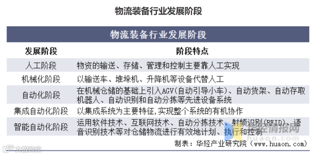 我国智能物流装备行业发展历史悠久,目前进入智能自动化发展阶段。