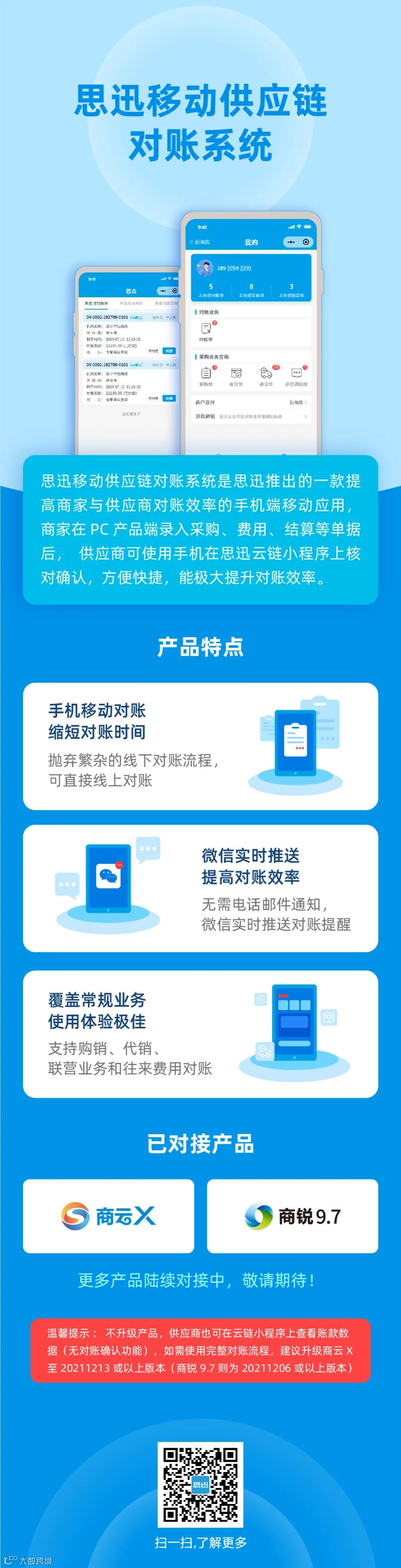 即日起,思迅用户可免费申请使用思迅移动供应链对账系统,数量有限,先到先得。