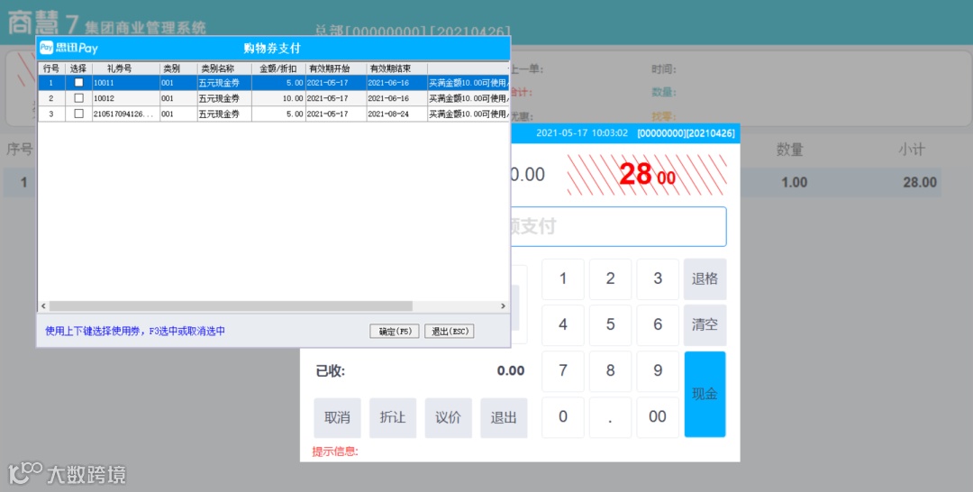 (会员支付时,界面自动弹出满足条件的购物券,免去繁琐流程提升会员消费体验)