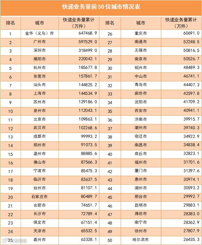 1-7月,全国快递服务企业业务量累计完成608.6亿件,同比增长4.3%;业务收入累计完成5880.4亿元,同比增长3.7%。其中,同城业务量累计完成73.1亿件,同比下降4.9%;异地业务量累计完成525.2亿件,同比增长6.3%;国际/港澳台业务量累计完成10.3亿件,同比下降17.8%。