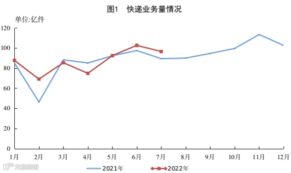 7月份,全行业业务收入完成1134.2亿元,同比增长13.3%;业务总量完成1207.4亿元,同比增长10.9%。