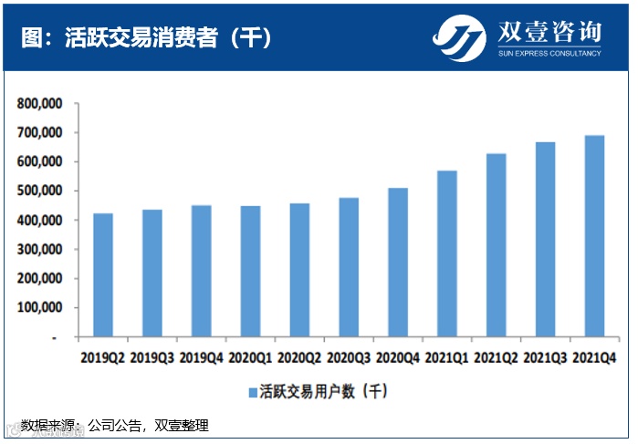 在2021年Q4,日均交易笔数达到4250万单,峰值的日订单量突破了5300万。