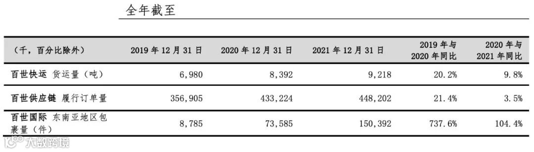 财报数据显示,2021年百世集团营收(不含已转让的国内快递业务)为人民币114.26亿元,同比增长8.5%;百世快运全年货运量同比增长9.8%;百世供应链全年云仓订单总数同比增长3.5%;百世国际在东南亚地区的全年包裹总量同比增长104.4%。