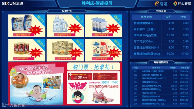 统一投放商品广告、商品特价、促销信息、商品销售排行榜等,广宣信息随时更替,顾客了解活动更直观方便。