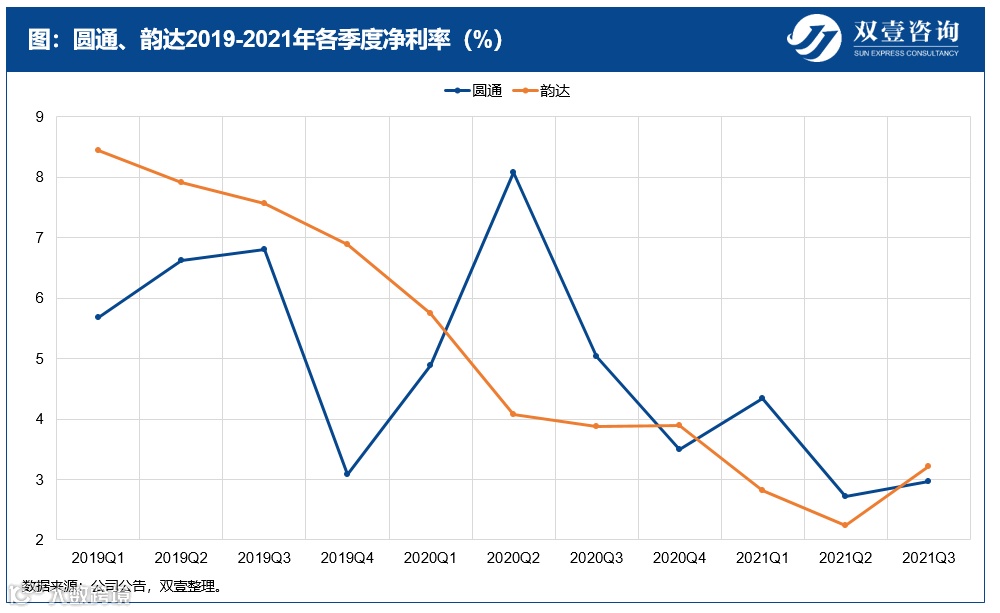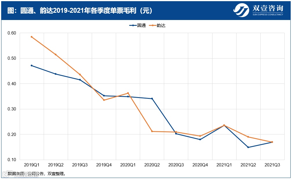 业务量差距进一步缩小,圆通单票毛利仍在追赶韵达