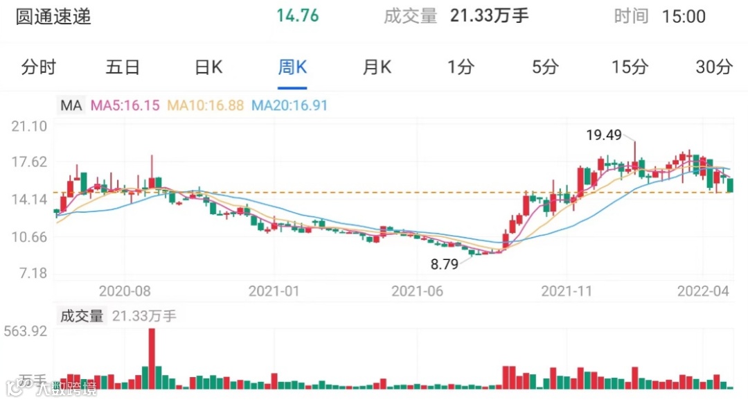 2021年12月9日,圆通收盘市值正式超越韵达。这是圆通在时隔四年之后,市值再次超过韵达。截至2022年4月25日,圆通市值为506.8亿元,韵达市值为446.4亿元,圆通市值高过韵达60.4亿元。